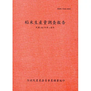 詳細資料ISBN:30016407 叢書系列:期刊 規格:平裝 / 149頁 / 16K/ 19 X 26 CM / 普通級/ 單色印刷 / 初版 出版地:台灣 內容簡介 臺灣糧食統計要覽103年 |