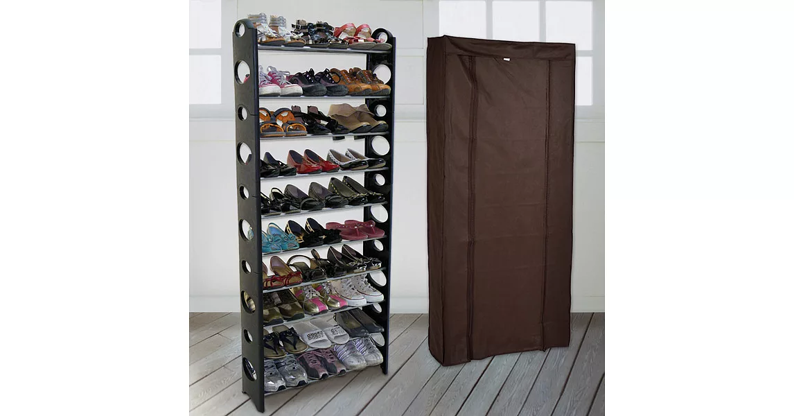 產品說明 ... |  【LIFECODE】可調式十層鞋架(黑色) + 防塵套(咖啡色) 售價:599